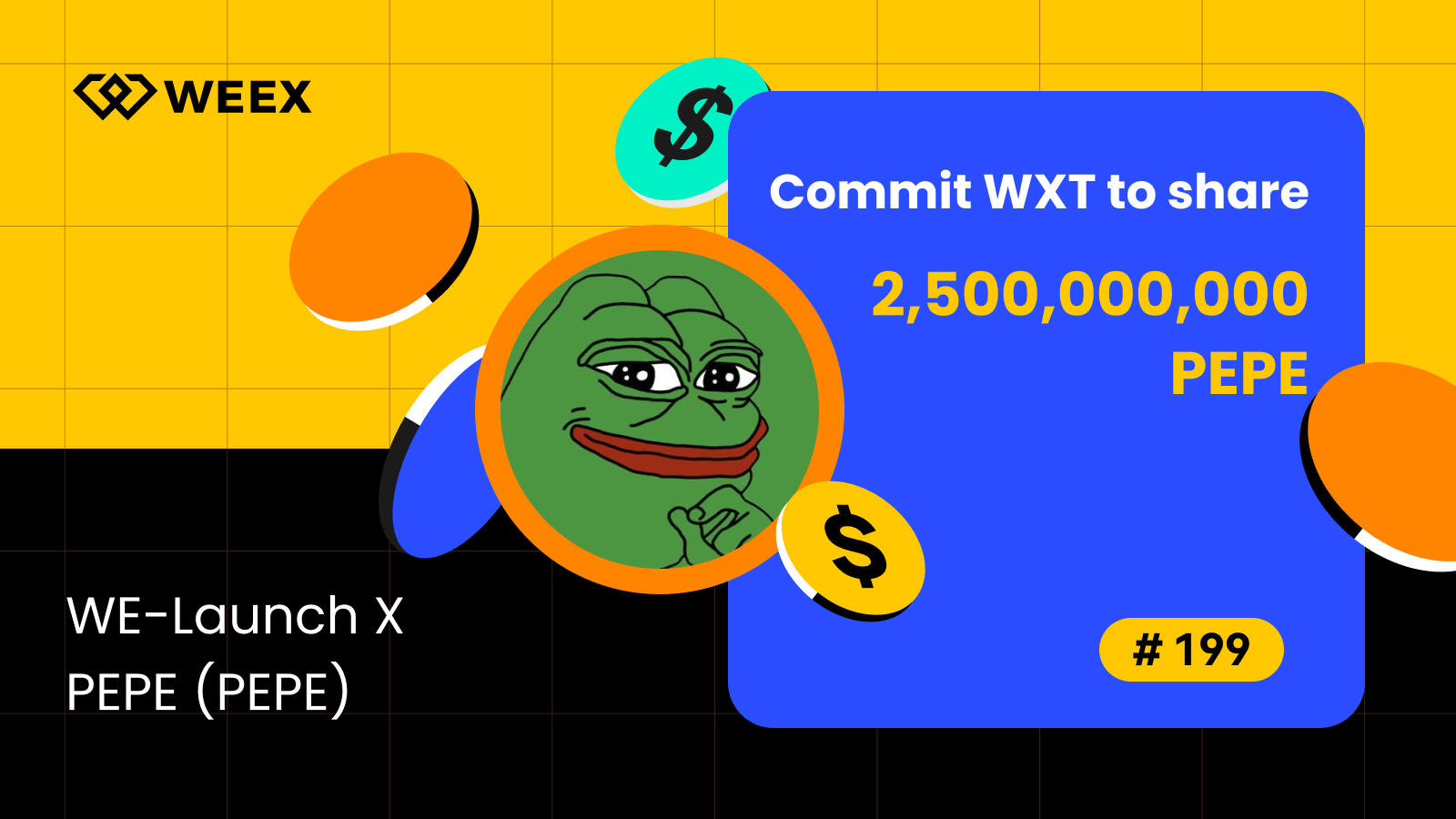 WEEX is launching an additional WE-Launch airdrop for the PEPE(PEPE) project.